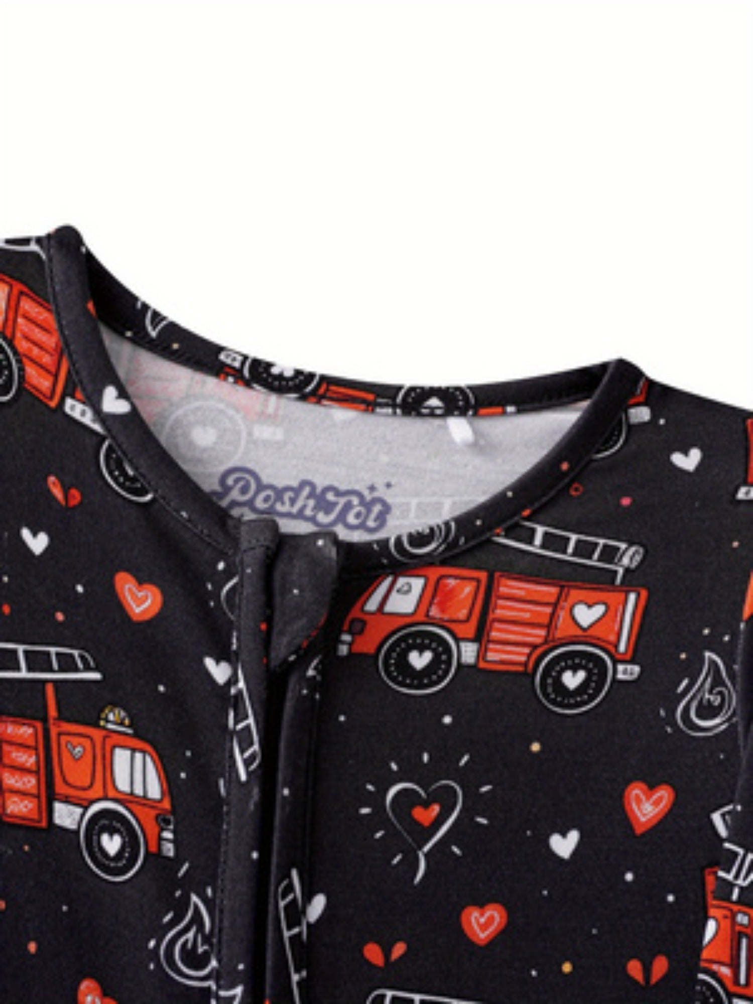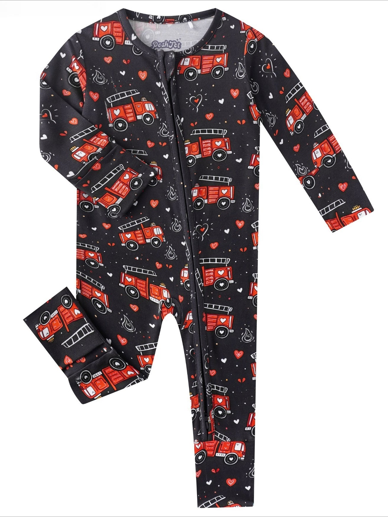 PoshTOT Fire Truck Bamboo Baby Convertible Zippy Romper