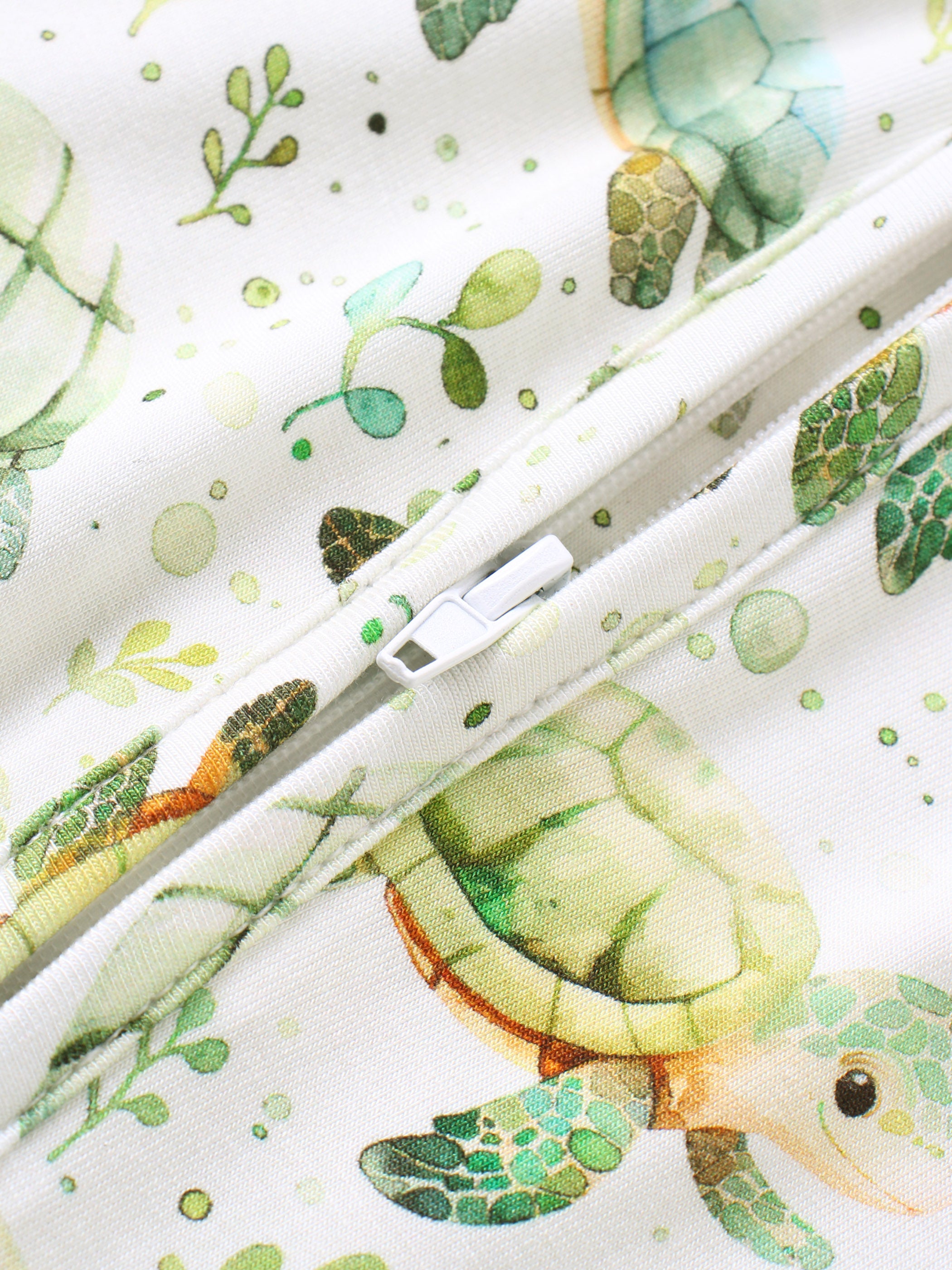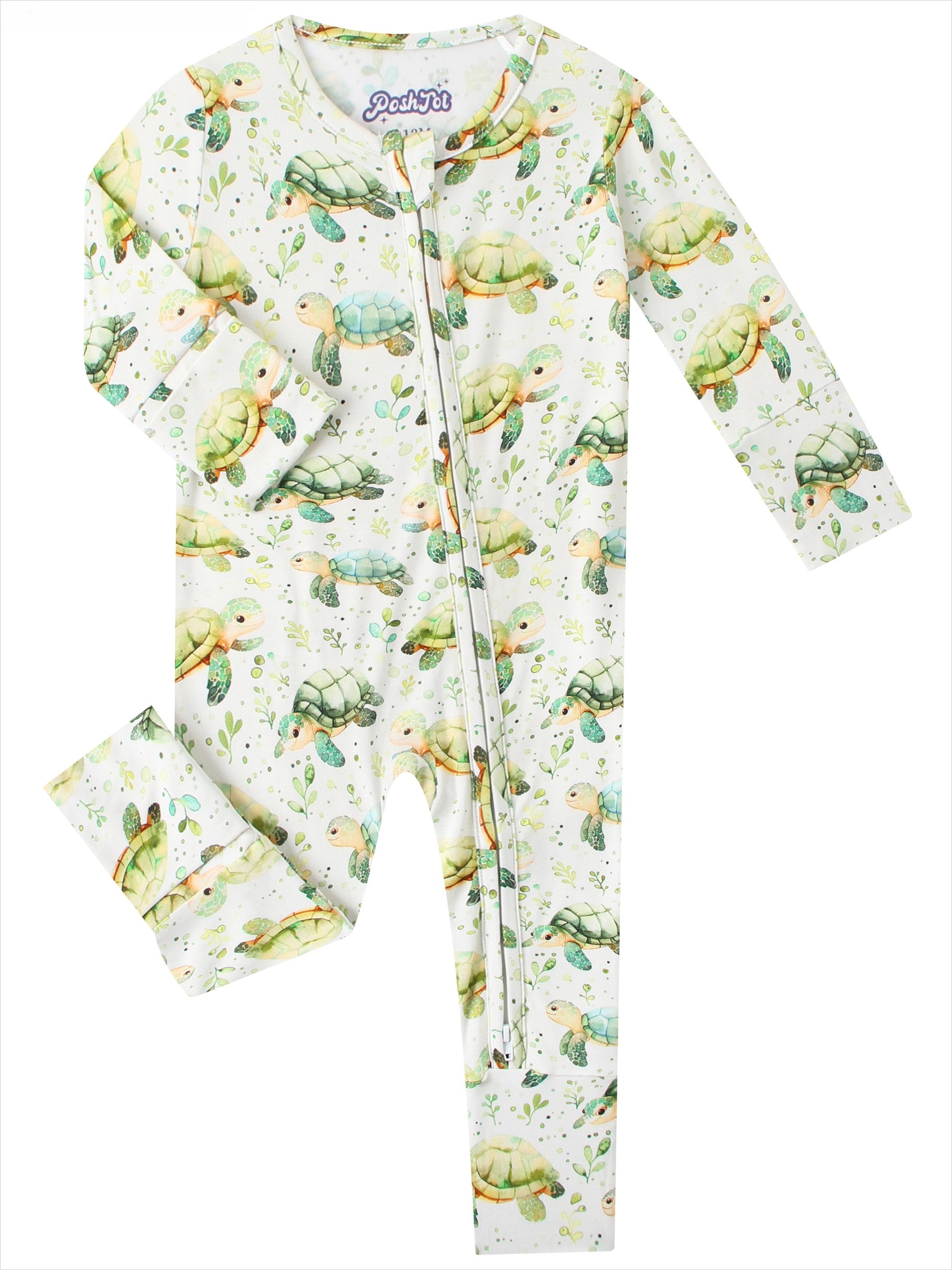 PoshTOT Green Sea Turtle Bamboo Baby Convertible Zippy Romper