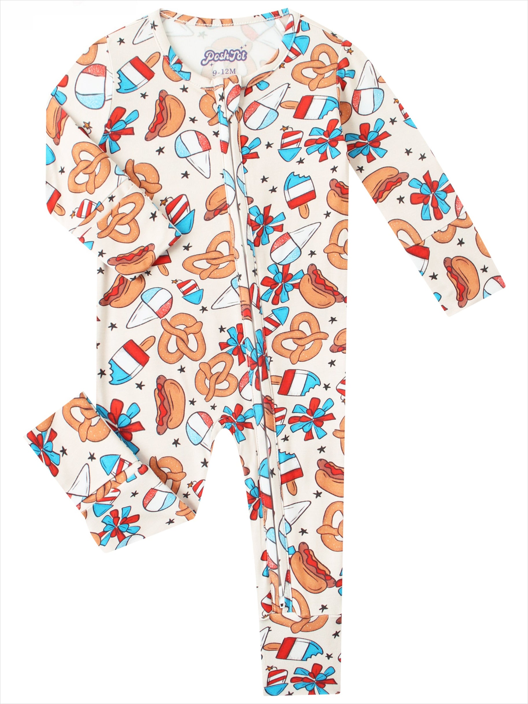 PoshTOT Hamburger Bamboo Baby Convertible Zippy Romper