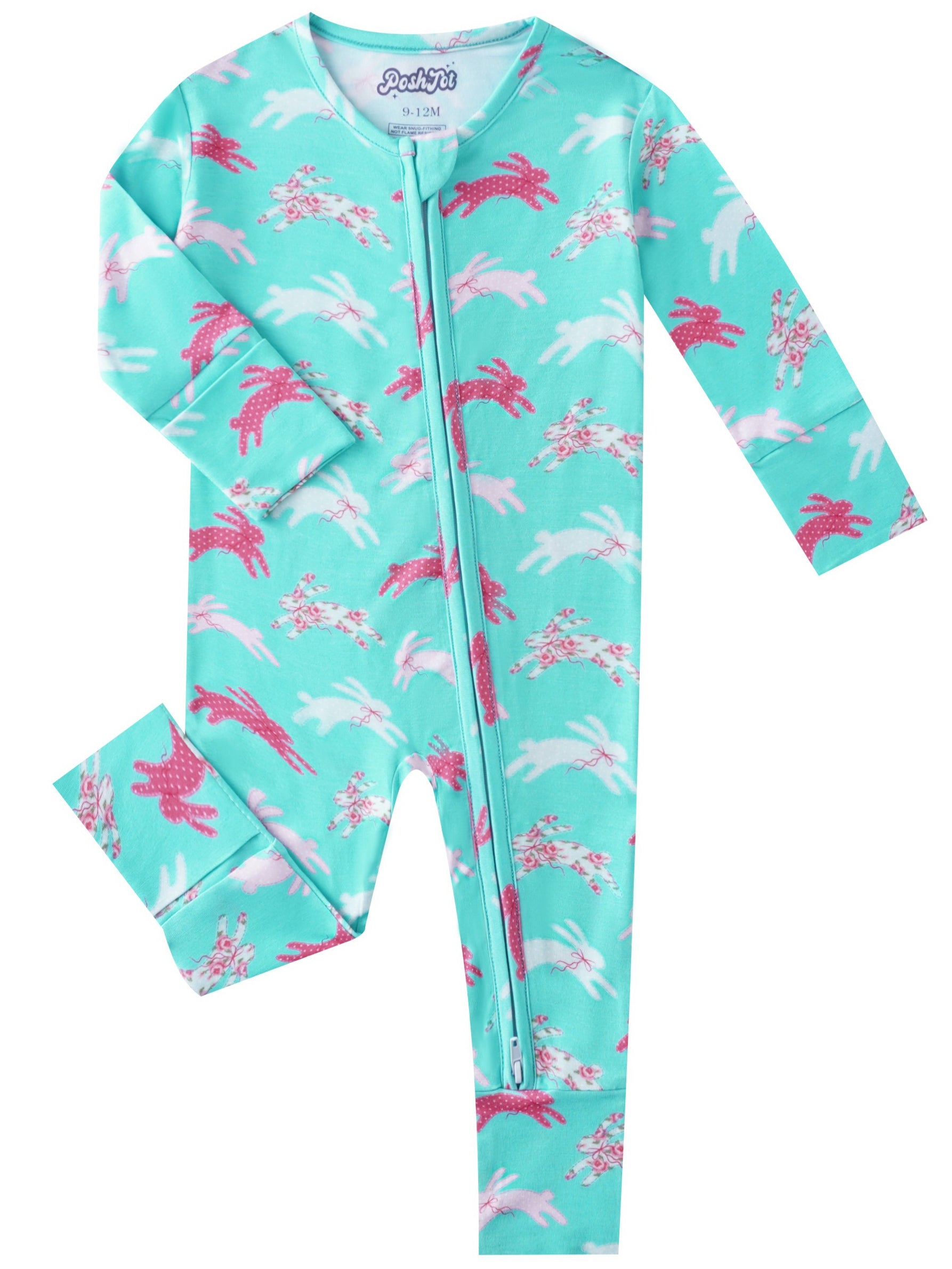 PoshTOT Little Flower Rabbit Bamboo Baby Convertible Zippy Romper