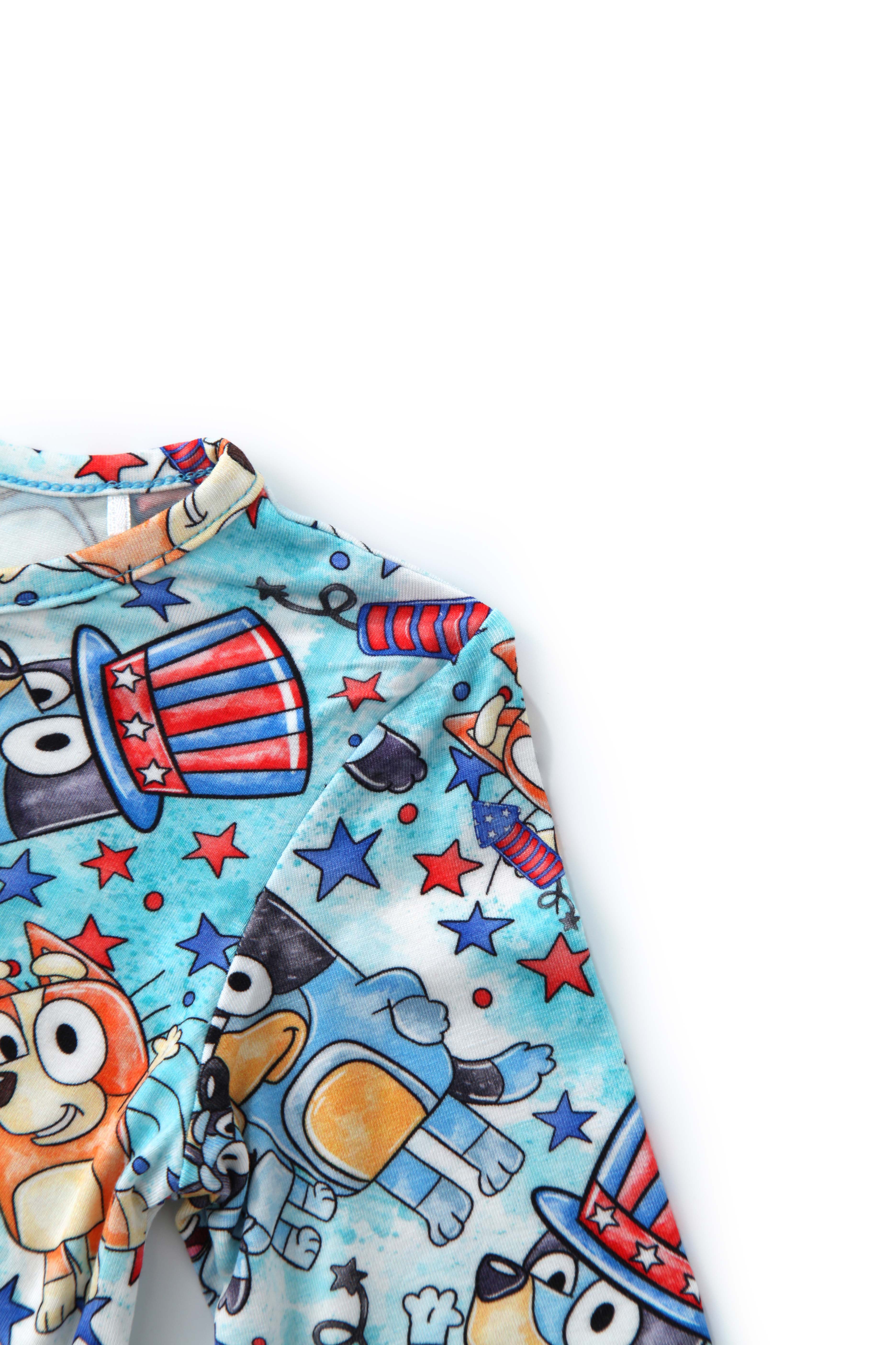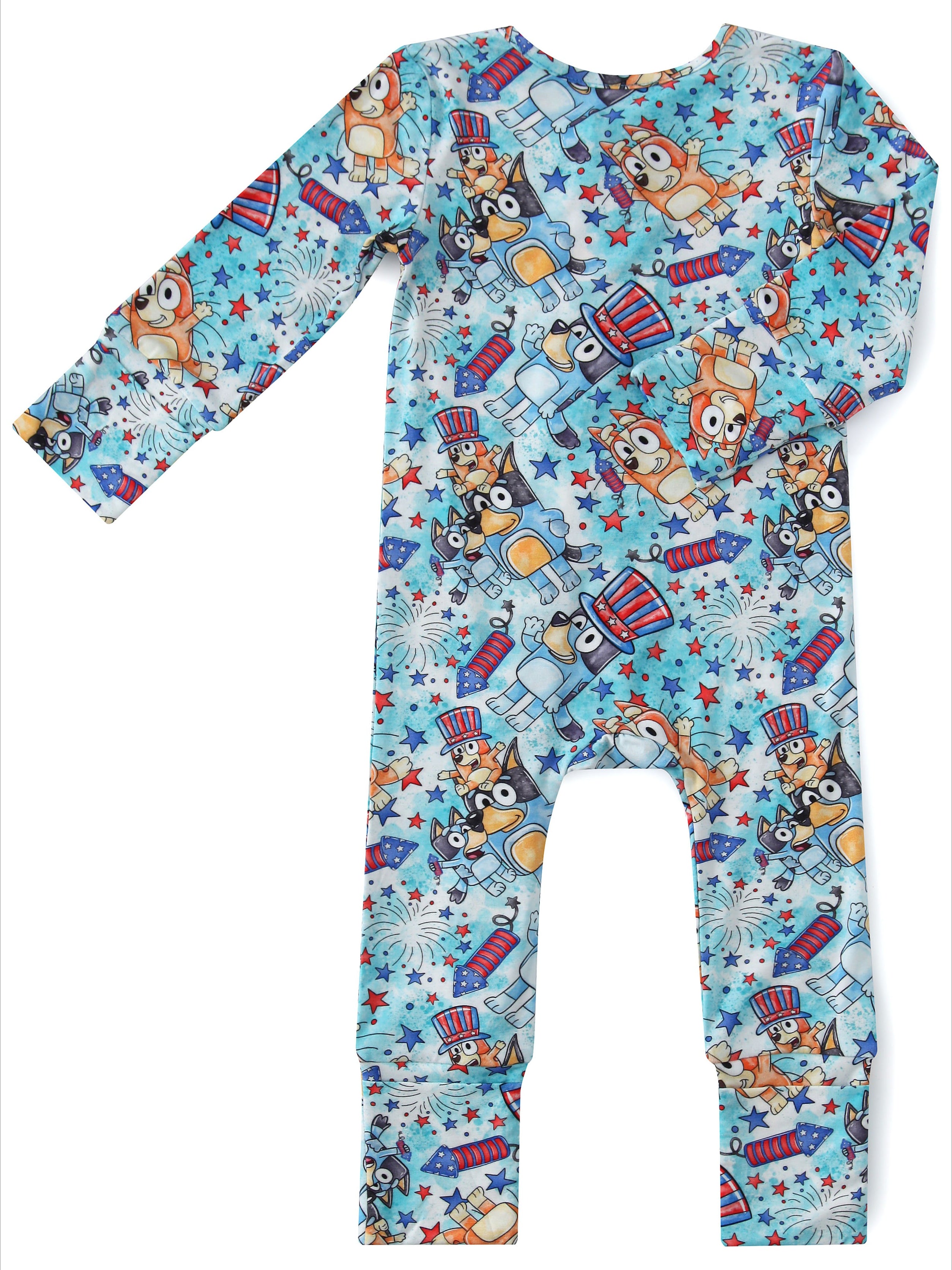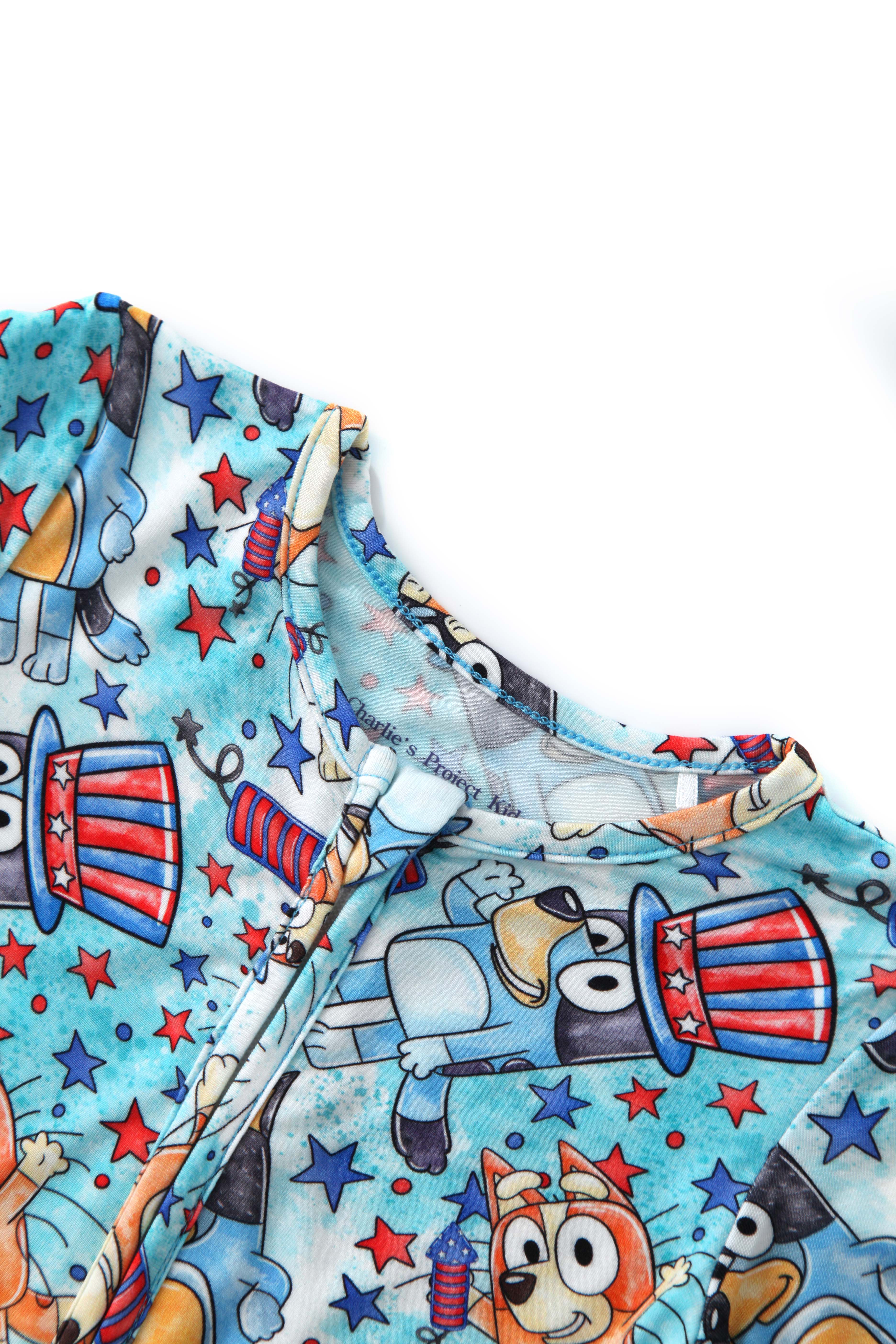 PoshTOT Blue Dog Baby Bamboo Baby Convertible Zippy Romper