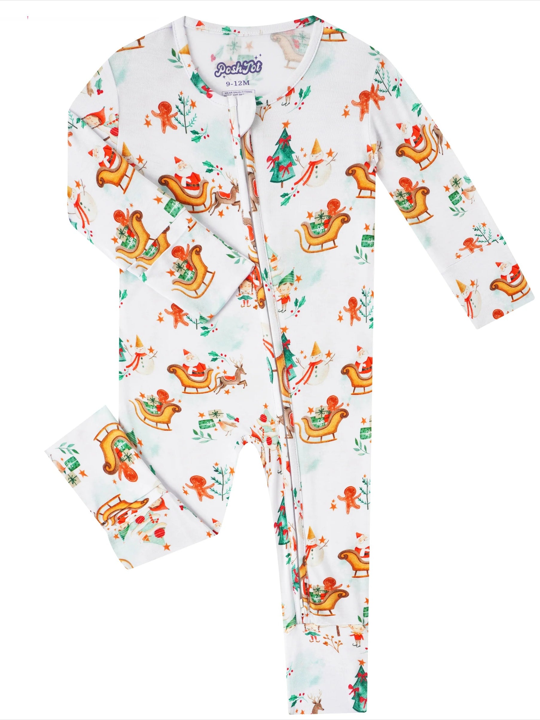 PoshTOT Snowman Bamboo Baby Convertible Zippy Romper
