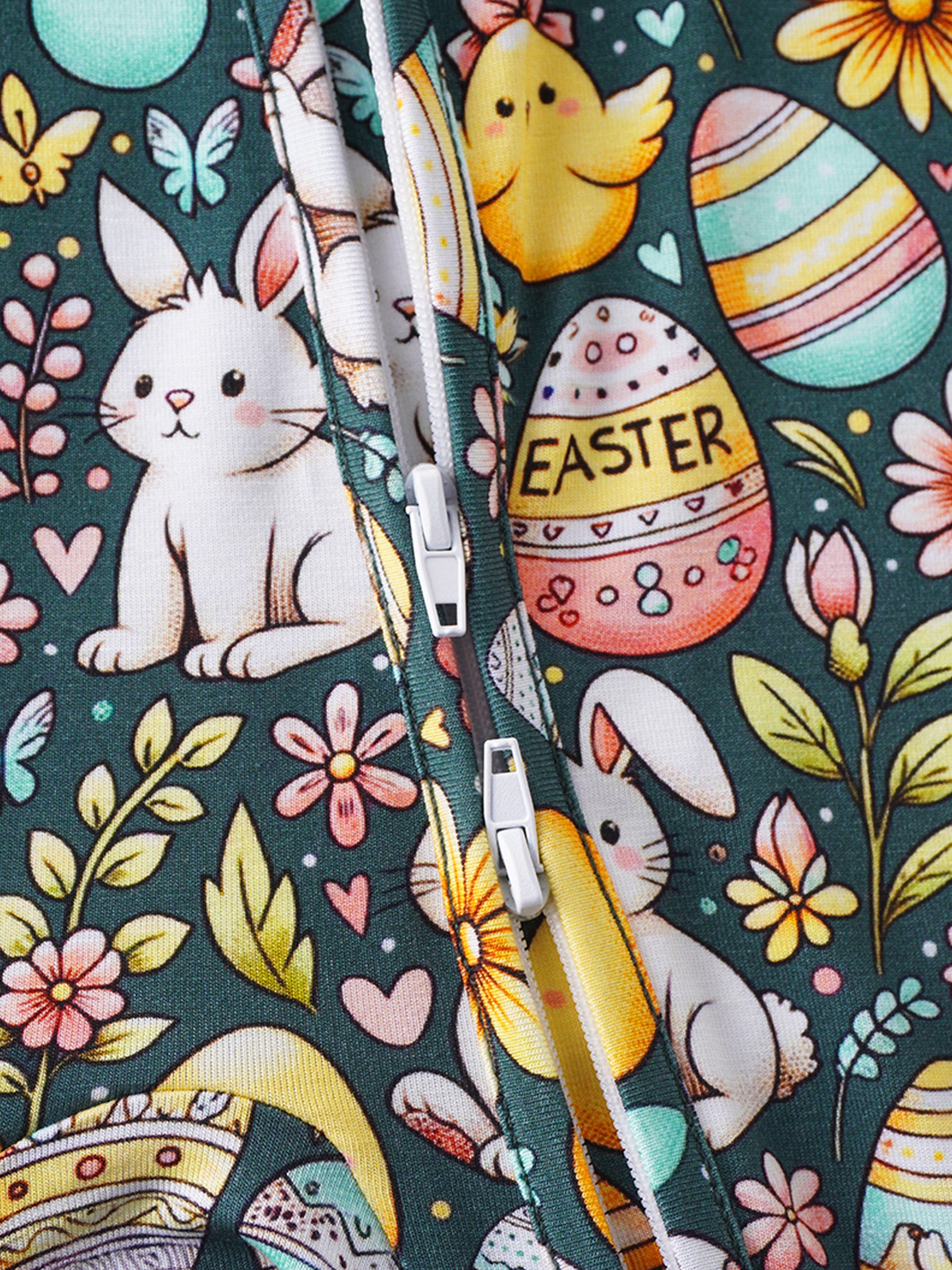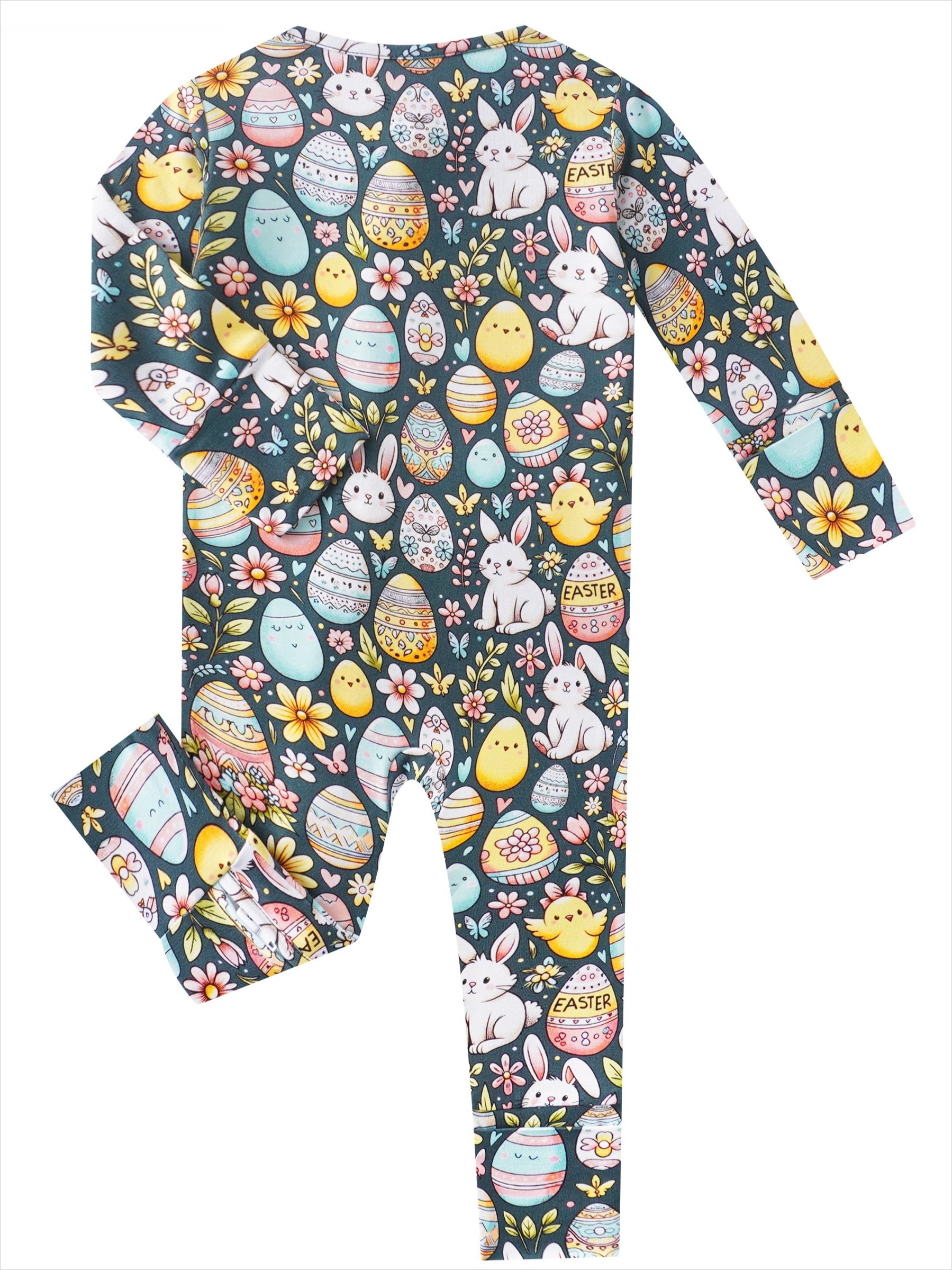 PoshTOT Easter Bunnies & Eggs Bamboo Baby Convertible Zippy Romper
