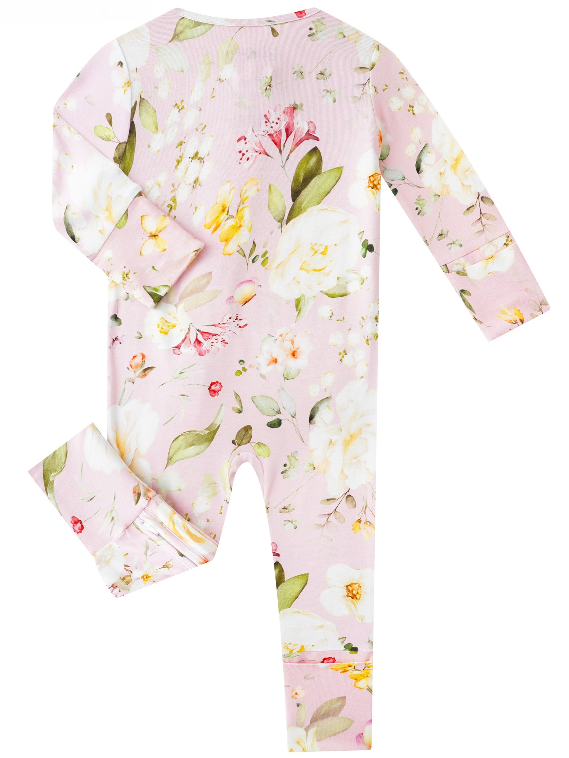 PoshTOT White Rose Bamboo Baby Convertible Zippy Romper